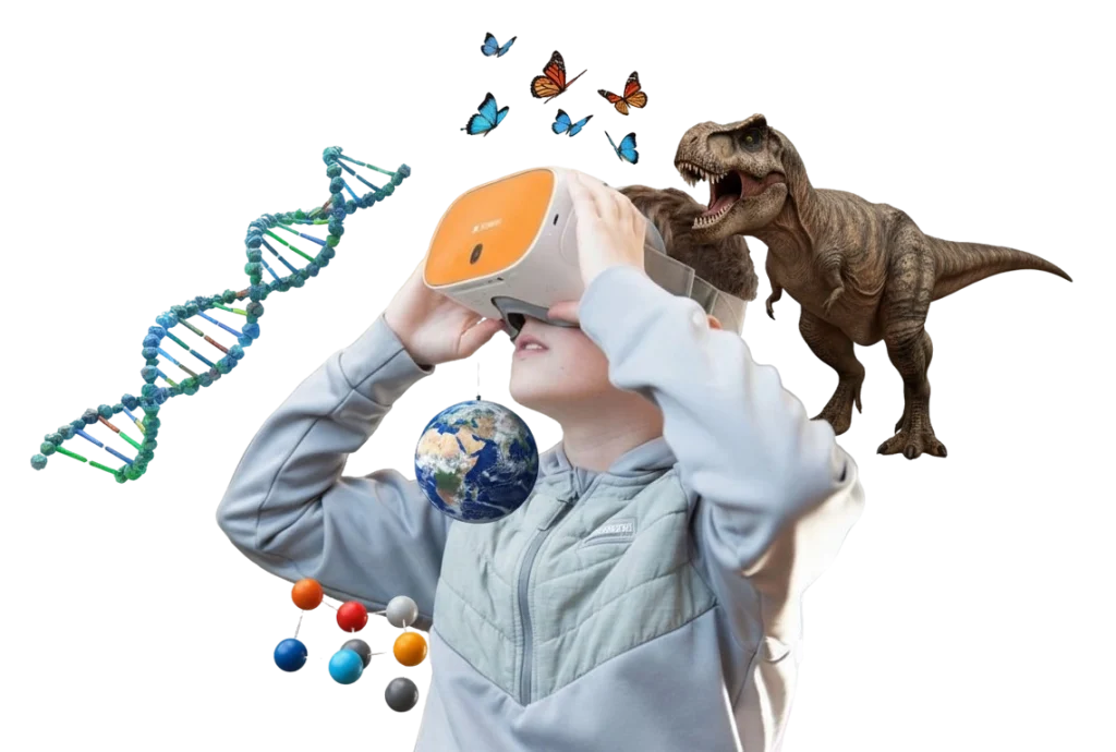 Realidad Virtual para Educación Escolar Plataforma de realidades extendidas para la mejora de los aprendizajes desde la primera infancia hasta la educación media y diversificada (preparatoria). Solicitar demo Aumenta la retención de conocimientos y la motivación del estudiante Permite al docente visualizar, de manera personalizada, lo que cada estudiante percibe en la experiencia Aumenta la retención de conocimientos y la motivación del estudiante Aumenta la retención de conocimientos y la motivación del estudiante Nuestra plataforma tecnológica Diseño sencillo e intuitivo Monitoreo de atención del estudiante Importa tu propio contenido desde la web Crea tu propio contenido a través del módulo de Inteligencia Artificial Educativa. Steam 3D: Explora objetos 3D de forma detallada e inspecciona sus partes Centro de profesiones: Ten una experiencia en primera persona en la profesión de tu preferencia Componentes de un VR Lab Licencia de acceso por institución 24 lentes (recomendación) Laptop para el docente y acceso a internet Explora nuestras experiencias Desarrollo de habilidades socioemocionales a través de XCelerate - Class VR Facilita entornos seguros para practicar la toma de decisiones y la comunicación, esenciales en el mundo laboral futuro. Permite el trabajo de competencias como la autorregulación emocional y resiliencia, claves para entornos profesionales cambiantes. Simula situaciones reales para desarrollar habilidades profesionales y herramientas útiles para el futuro laboral.